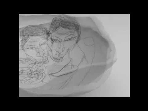 Life drawing on stoneware with ceramic pencil, ceramic transfers, gold, porcelain pens, and wallhanging 3D printed parts on the back.